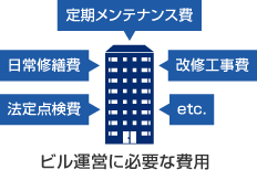 - ビルの一生には初期建設費の4~5倍もの費用がかかると言われています。ビルの資産価値を維持させるためには長期的に見た修繕計画が不可欠となり、中規模から大規模なリニューアル工事には“計画性”が必要となります。