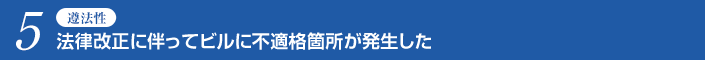 当社では、法改正に敏感に対処し、遵法化対応工事提案や法定点検作業の監理など、適法で、入居者様にとっても安全で安心なビルを運営するためのノウハウを提供します。